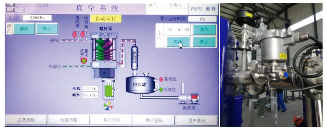 (2)維普立式螺桿真空泵全系配備了全自動清洗裝置,極大方便了客戶。針對抽可凝性氣體以及氣液混合物體能力強,泵出口可回收尾氣。